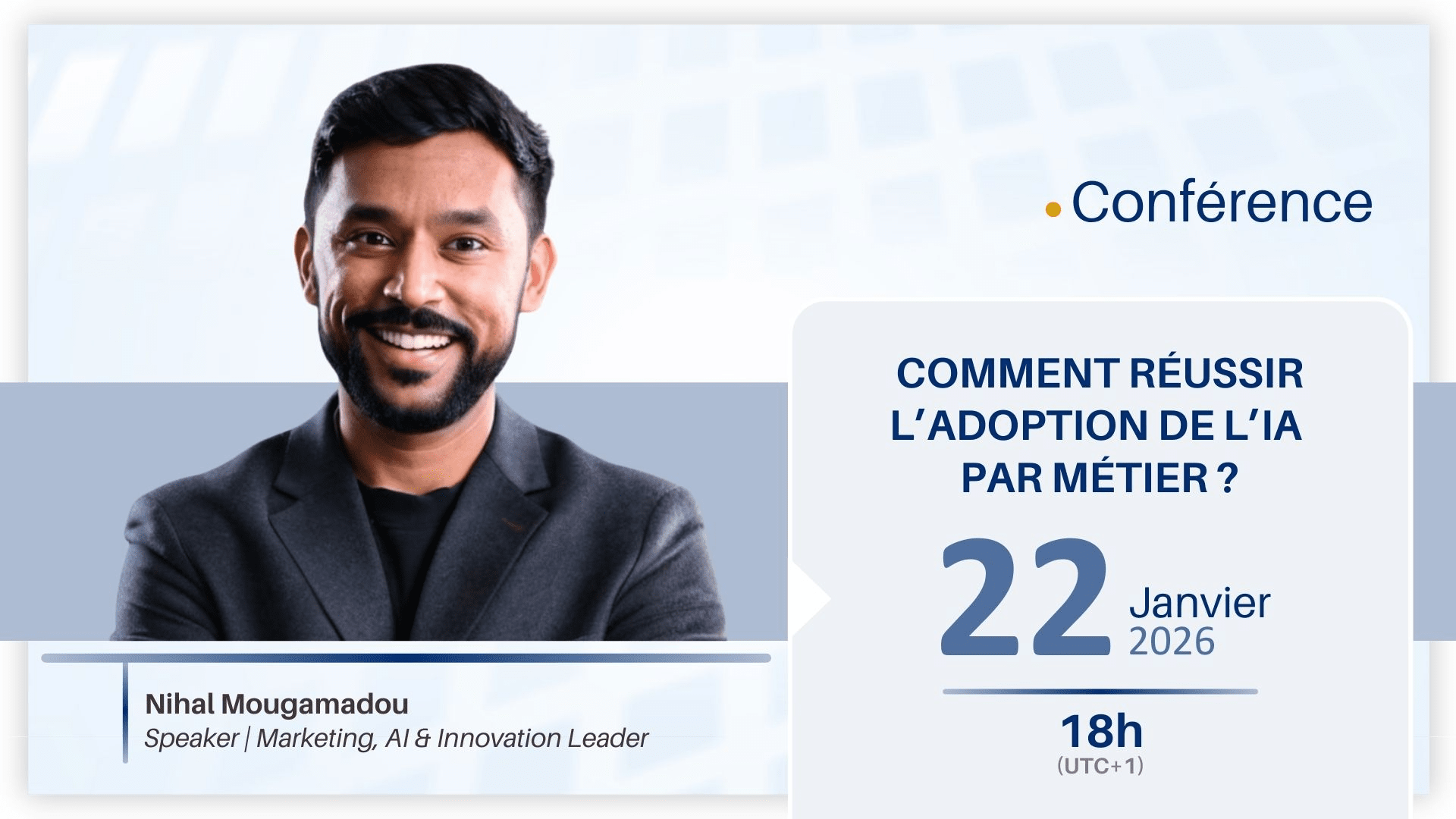 Nous avons le plaisir de vous inviter à la conférence "Comment réussir l’adoption de l’IA par métier ? De la sensibilisation des équipes à une gouvernance des données maîtrisée" animée par Nihal Mougamadou :